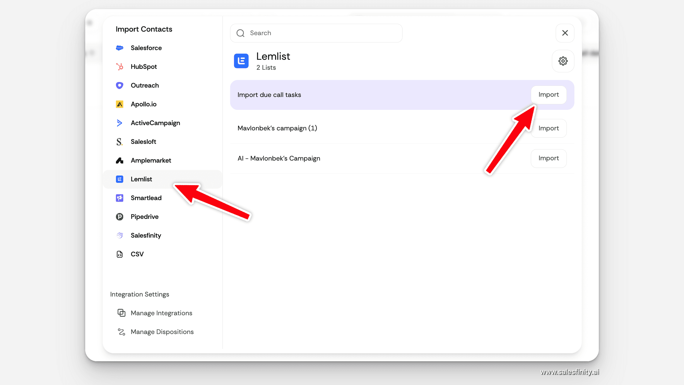 Does the Lemlist integration require a paid Lemlist plan? The Salesfinity-Lemlist integration works with any Lemlist plan that supports API access. If you can connect Lemlist to other tools, you can connect it to Salesfinity.
